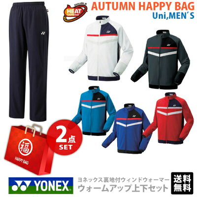 「あす楽対応」【上下セット】ヨネックス ユニセックス カラーが選べる2点セット 裏地付ウィンドウォーマーシャツ70062+パンツ80062(ネイビーブルー) テニスウェア福袋 AUTUMN HAPPYBAG 2019 『即日出荷』